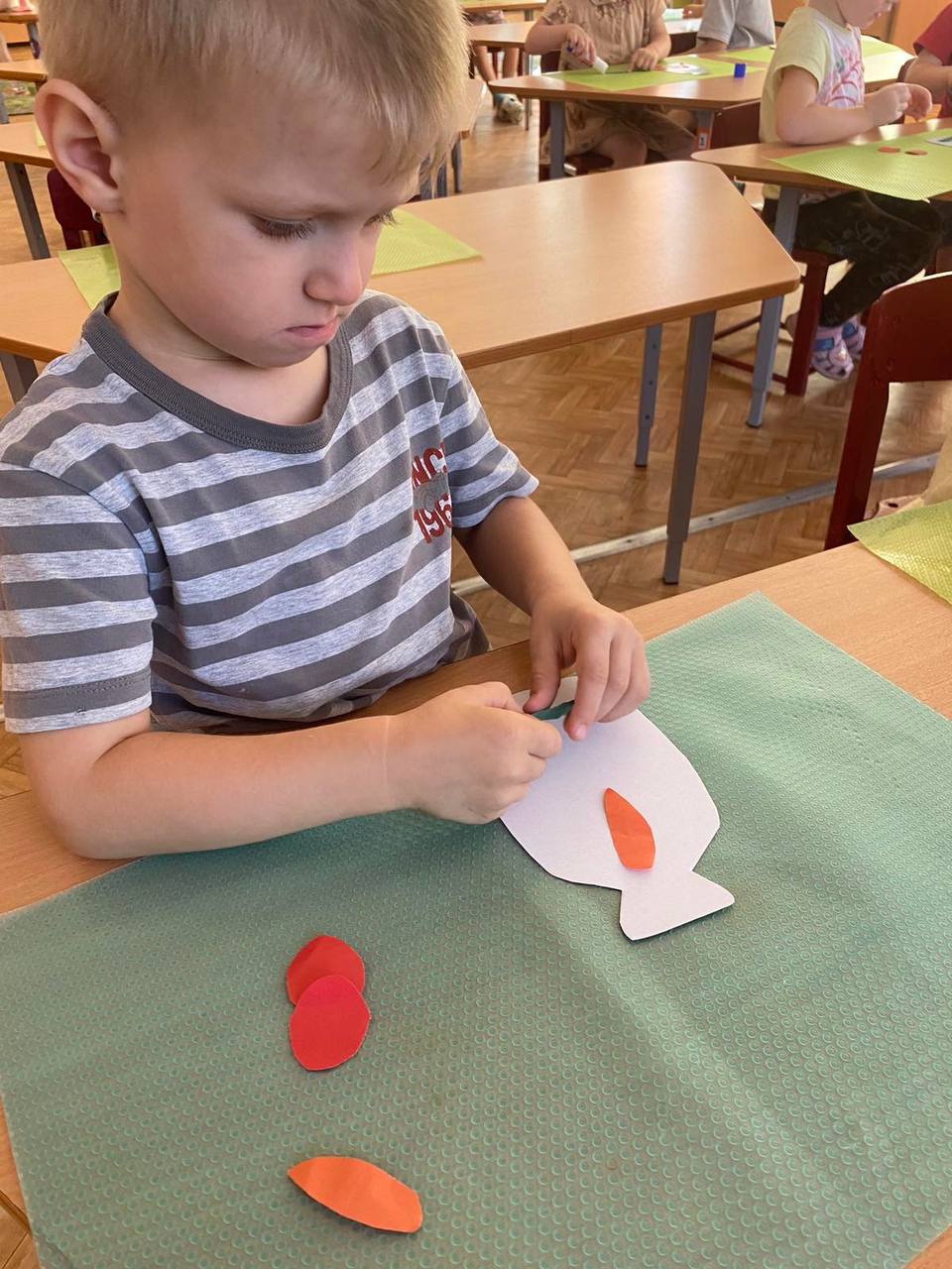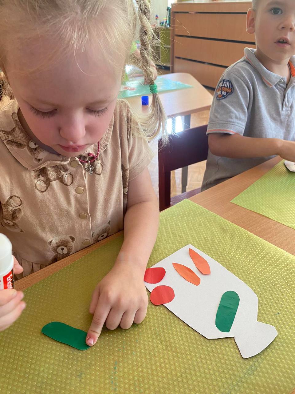 Формировать умение наносить клей на детали, наклеивать их на лист бумаги.