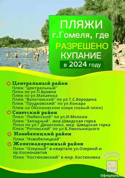 В городе над Сожем для отдыха у воды оборудовано 13 пляжей, разрешенных для купания, в том числе 1- новый.