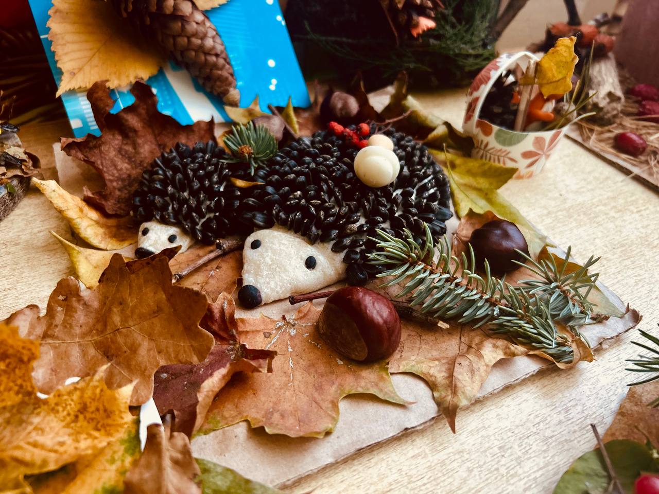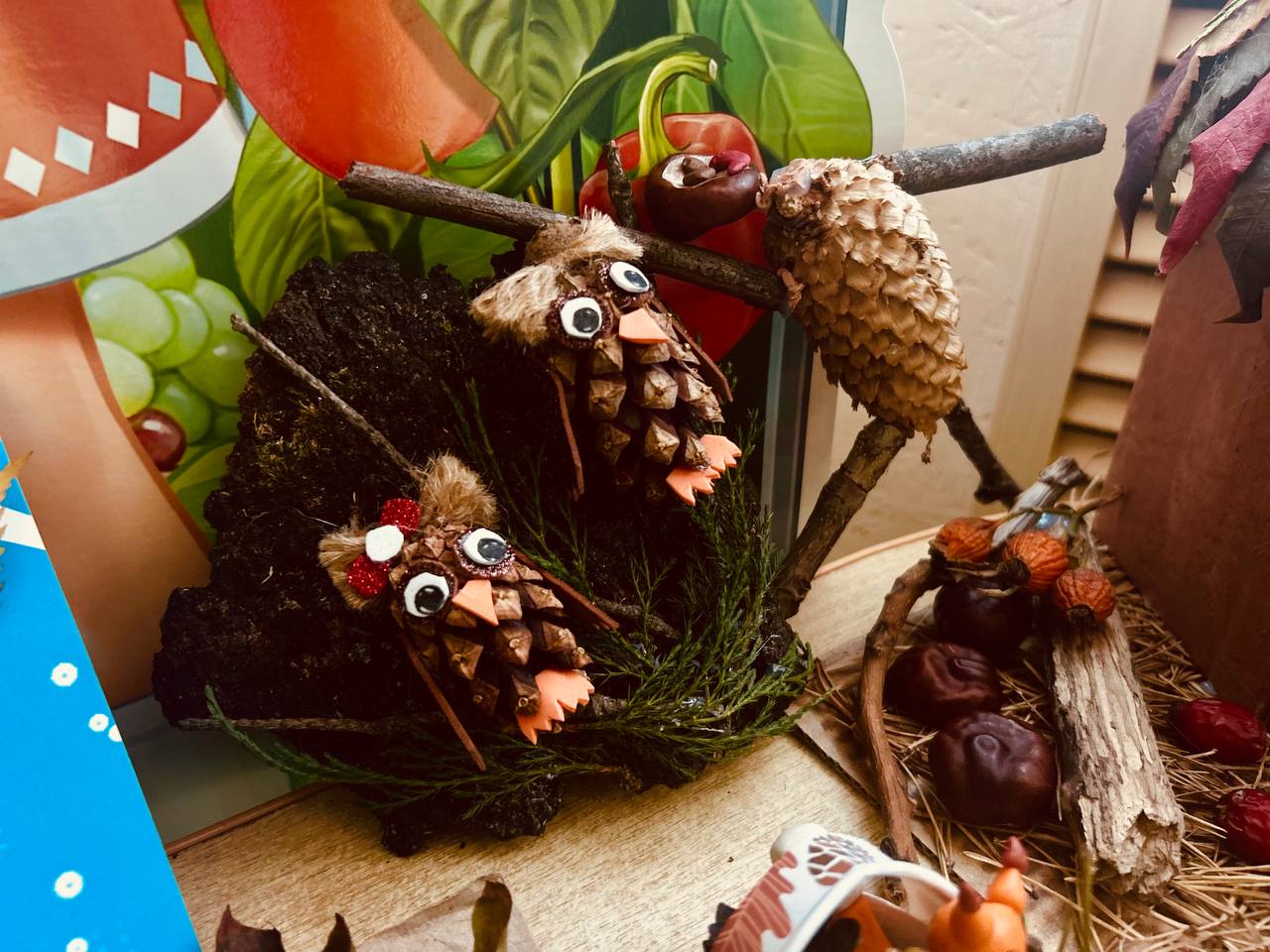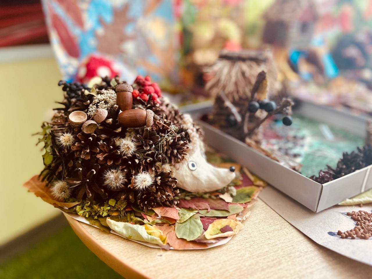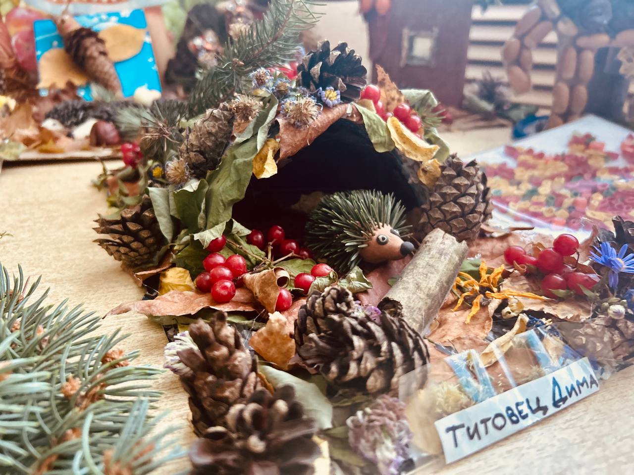 Ребята вместе со своими родителями изготовили красивые осенние поделки, природный материал для работы выбирали сами.